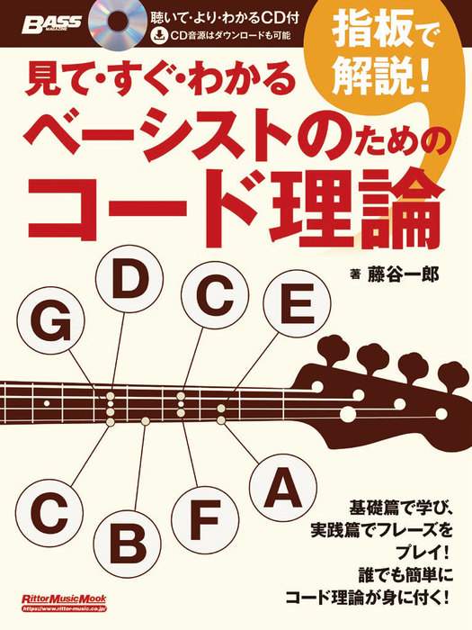 コード理論に疎くなりがちなベーシストですが、 指板で考える ということであれば、ベーシストにもわかりやすいのではないでしょうか。この本ではコードに関する理論を指板上で説明し、それをフレーズメイクに応用するテクニックを解説しています。小難しくて理解することができなかったコード理論も、指板の図を使った解説により視覚的に理解することができます。これまでに感覚だけでフレーズメイクをしてきた方や、初心者ベーシストなどもわかりやすく学ぶことができます。YouTubeチャンネル「16 Bass Lesson」にてベーシスト向けコンテンツを発信する藤谷一郎氏による、もっともわかりやすいコード理論の(ベーシスト向け)教則本です。