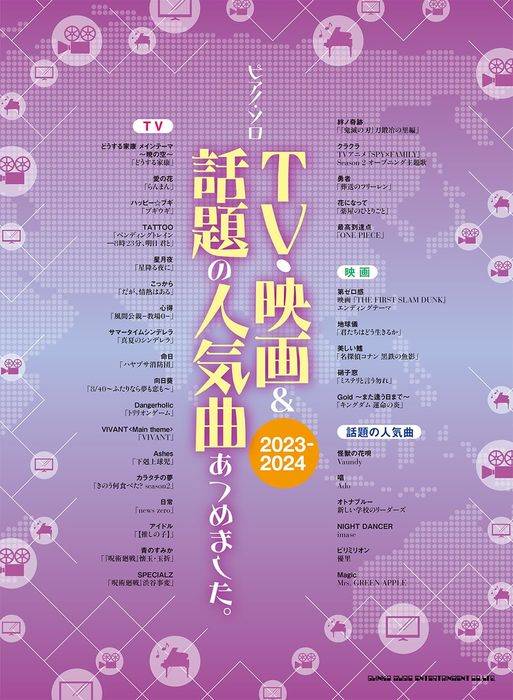 「あつめました。」シリーズ好評のピアノ曲集が今年も登場! 2023年のドラマ・映画を彩った人気主題歌、アニメやSNSを盛り上げた曲など、様々な場面で耳にするヒットソングが一挙集結! 話題の音楽をピアノで楽しみ尽くせる一冊です。原曲の雰囲気を活かした、弾き応えのある中級アレンジです。